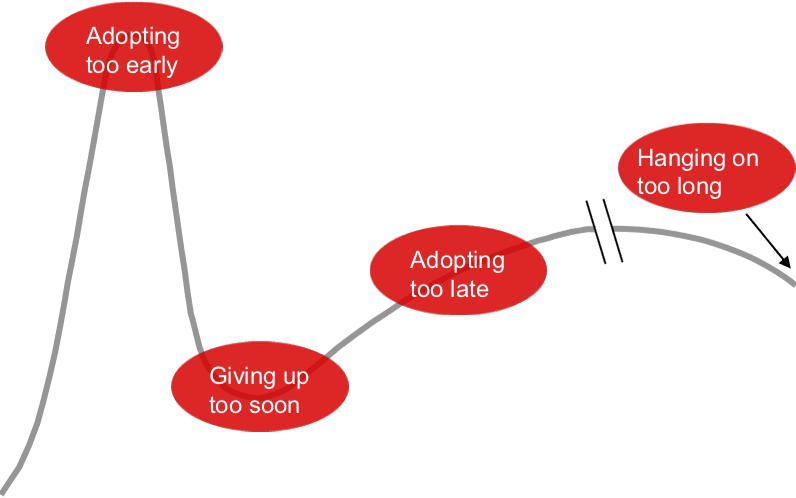 Peak of Inflated Expectations: In this phase, the technology receives significant attention, and there is often an overestimation of its potential benefits. It is a period of "hype" where expectations are at their highest, and there is a lot of excitement and media coverage around the technology.