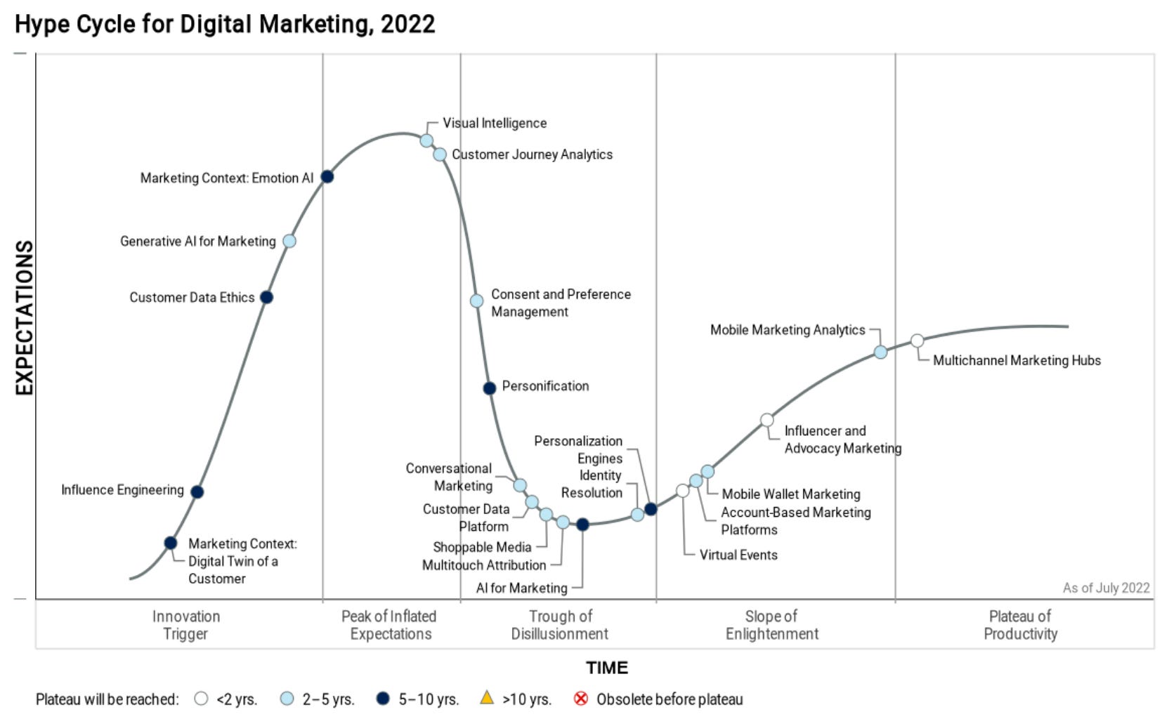 Trough of Disillusionment: As the initial hype subsides, the limitations and challenges of the technology become apparent. This phase is characterized by a dip in interest and disillusionment among some early adopters who may not see the expected results or face difficulties in implementation.